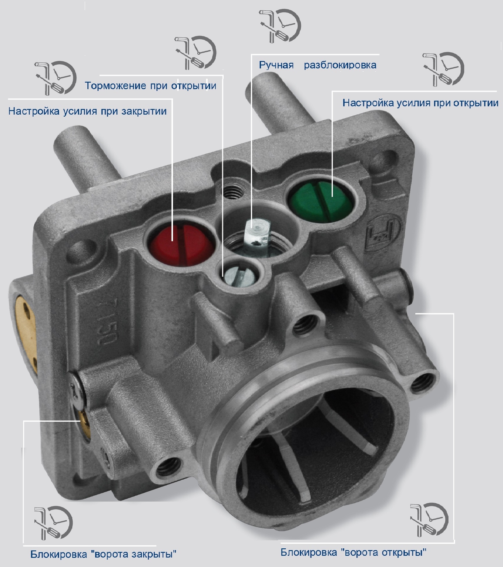 Позволяет устанавливать гидравлическую блокировку на приводах на этапе установки: